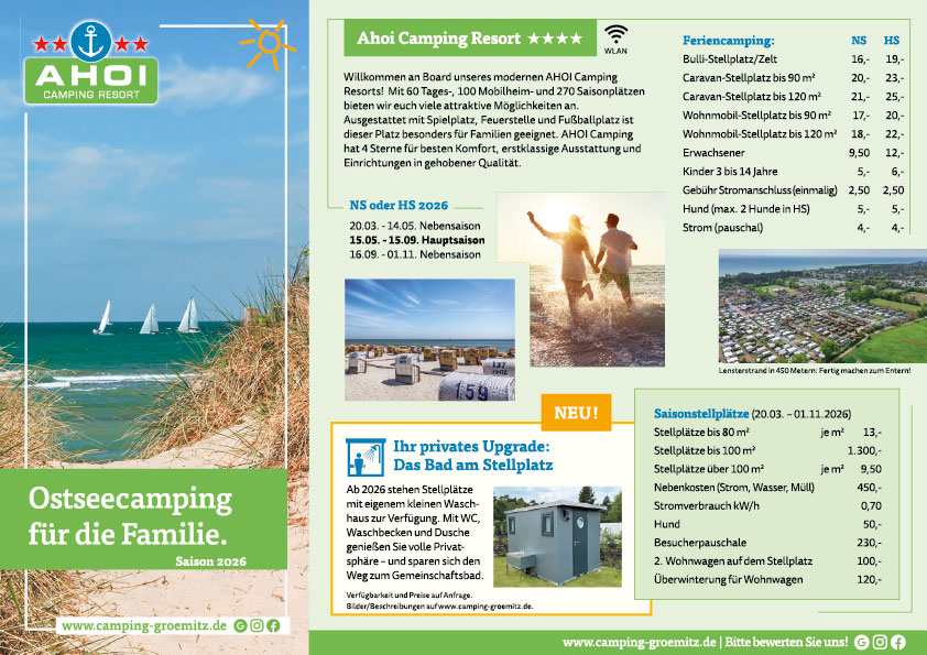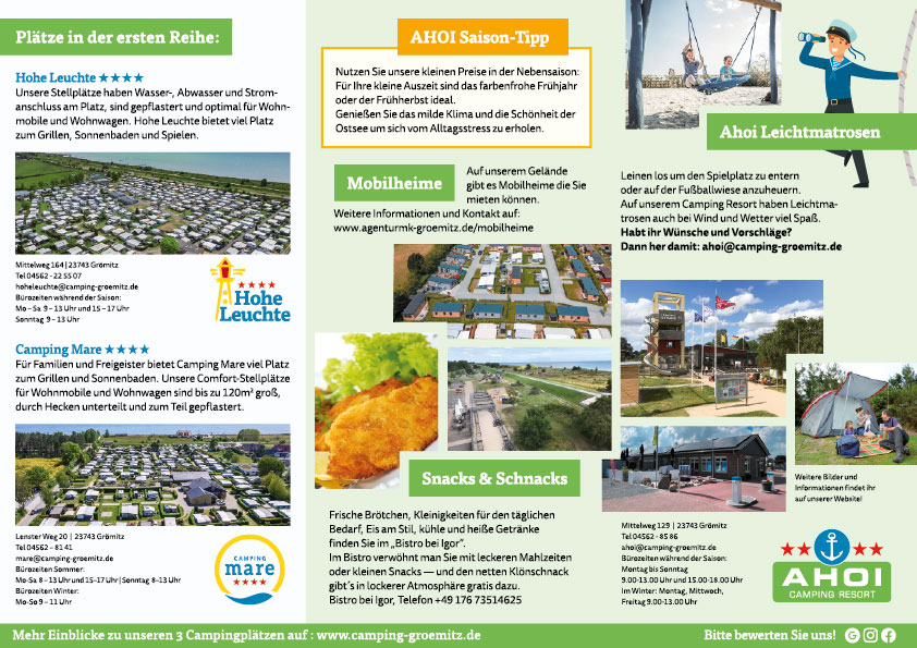 Für Wünsche und Anregungen sind wir immer offen und dankbar: ahoi@camping-groemitz.de